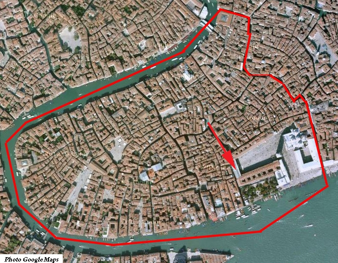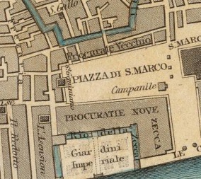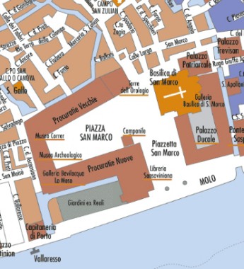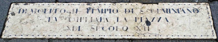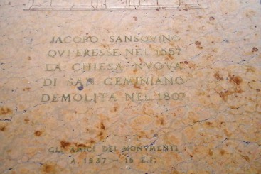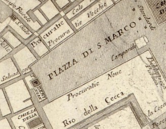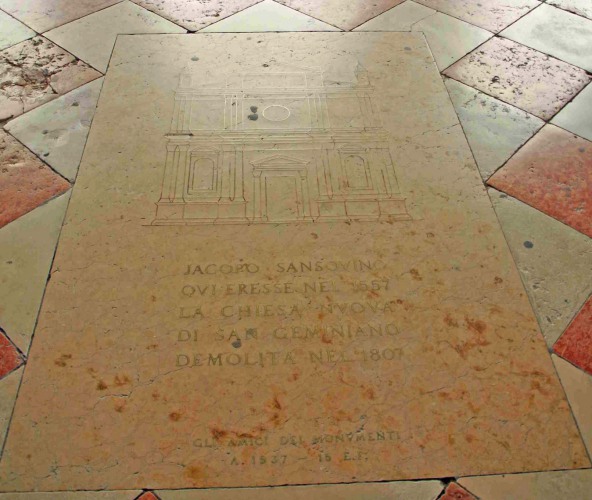 Sur la Piazza San Marco, à hauteur du Numéro 53 des Procuratie Nove, une plaque indique l'emplacement de l'église primitive.