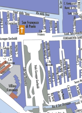 L'ancienne entrée gothique (XVe siècle) du monastère (porta dell'ospedale delle Pute) se trouve au 1310 de la Via Garibaldi, près de la Calle San Domenego.