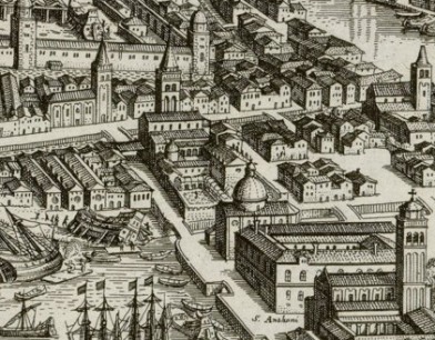 La cour de l'Inquisition, instituée par Pie IV siégeait ici à partir de 1560. Les livres interdits qui s'accumulaient ici furent brûlés tous les 29 avril et les cendres versées dans la partie du rio de Sant'Anna, maintenant comblée et qui devint la Via Garibaldi. L'inquisition se déplaça ensuite au Frari.