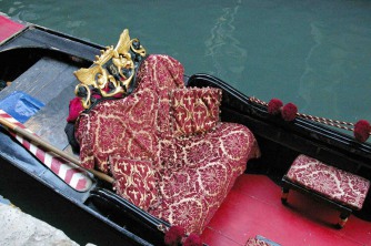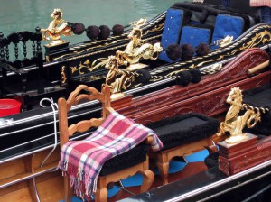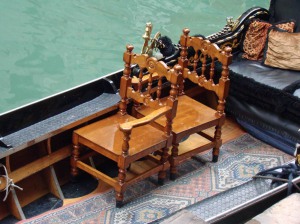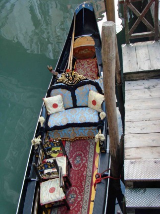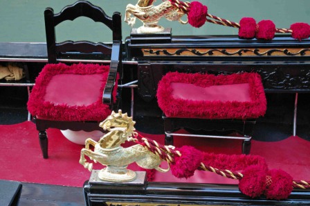 Chaque gondolier essaye de se distinguer par la somptuosité de l'aménagement intérieur de son embarcation.