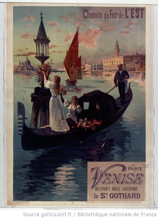 La gondole a été de tout temps, synonyme de Venise. On peut le constater sur cette ancienne affiche des Chemins de Fer de l'Est.