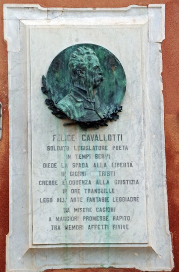 Felice Cavalotti est né à Milan en 1842 et mort à Rome en 1898. Personnage politique et écrivain haut en couleurs, il n'avait pas encore terminé ses études secondaires lorsque la Lombardie fut libérée par les Autrichiens. En raison de son jeune âge, il ne put participer à l'expédition des “Mille“. Il fut élu député en 1873, assumant le rôle de porte-parole de Garibaldi au Parlement. En plus d'être un politicien, il était un journaliste, dramaturge, un homme de théâtre, un poète (loué par Carducci), un linguiste, un amateur ardent, un épéiste intrépide. Il est mort à Rome dans un duel avec le député Ferruccio Macola, directeur de la "Gazzetta di Venezia".