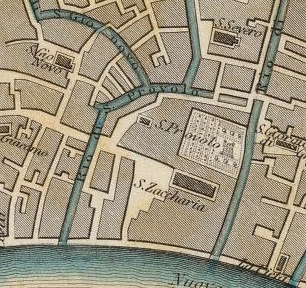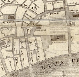 L'église de San Procolo (1) (vulgo San Provolo) fut fondée par Angelo Participazio en 809 et le monastère en 814. Elle était sous le patronage des religieuses de San Zaccaria qui y avaient transféré en 830, le soin “des âmes“, en y déléguant deux chapelains. Le grand incendie de 1107 dévora aussi cette église. En 1389, quelques restaurations eurent lieu et en 1646 une reconstruction modeste fut entreprise par les moines de San Zaccaria.