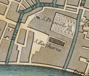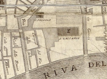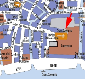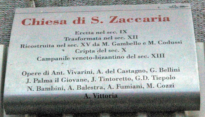 La première église qui datait du IX ème siècle fut construite sous le 11ème doge, Giustiniano Participazio (827-829) afin d'y abriter les restes de Zacharie, le père de Jean le Baptiste. Huit doges furent enterrés par la suite dans la crypte romane.