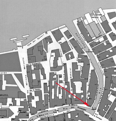 Sur le Rio Pontinello, relie le Fondamenta San Mauro à l'Ouest à la Via Baldassare Galuppi à l'Est