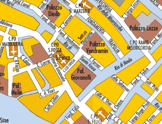 Sur le Rio de Santa Fosca, relie le Fondamenta Vendramin au Nord-Est, au Campiello de la Chiesa au Sud-Ouest.