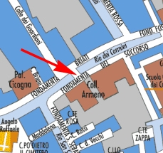Sur le Rio dei Carmini, relie le Fondamenta Briati au Nord-Ouest, au Fondamenta del Soccorso au Sud-Est