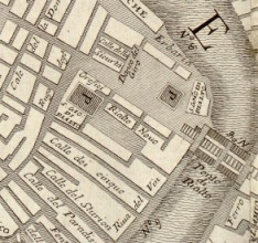 La façade de la chapelle absidiale est porteuse d'une croix qui surmonte une inscription qui rappelle aux marchands d'exercer leur profession avec honnêteté.