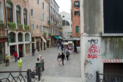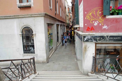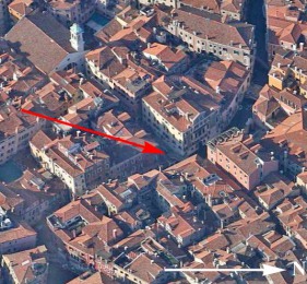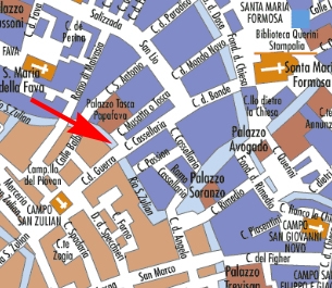 Il relie la Calle al Ponte de la Guerra au Nord (Sestiere Castello), au Campo de la Guerra au Sud (Sestiere de San Marco).