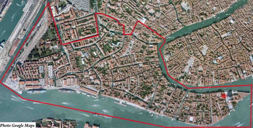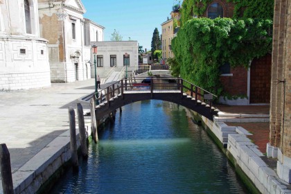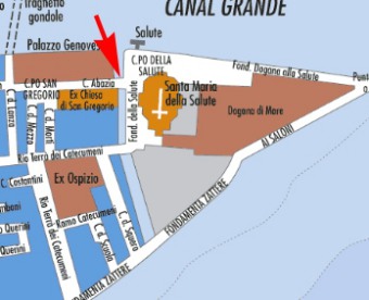 Sur le Rio de la Salute, relie le Sotoportego de l'Abazia à l'Est au Fondamenta de la Salute à l'Est