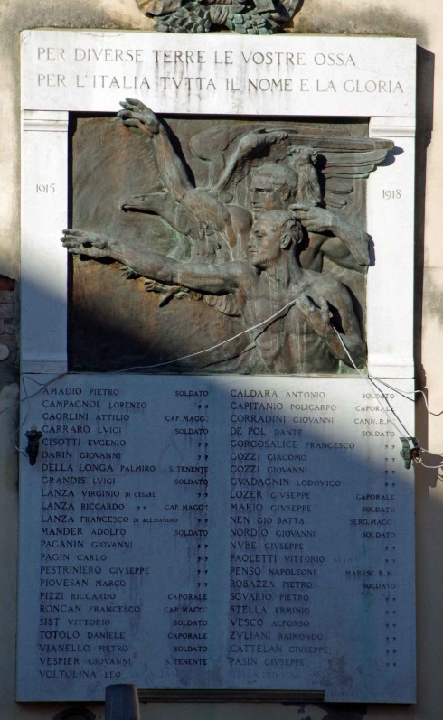 Il n'existe pas à Venise de monuments aux morts comme on peut les connaître dans les communes de France. Les victimes des guerres mondiales sont honorées dans le cadre des paroisses par des plaques apposées sur un mur de l'église paroissiale.