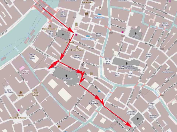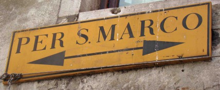 Dilemme! Comment voulez-vous que le touriste moyen s'y retrouve! Pour notre part nous tournons sur notre droite par le Ramo Marzaria San Salvador. Atteindre San Marco par l'autre direction, ce sera pour autre fois!