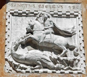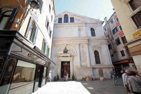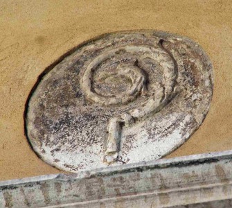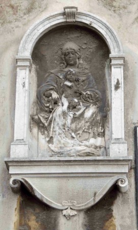 Face à nous, vers l'Est, un bas-relief représentant une vierge à l'enfant, souligné par une grecque peu courante à Venise.