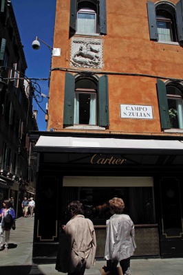 Nous voila sur le Campo San Zulian, ou l'on peut voir de belles patères, un bow-window haut perché et