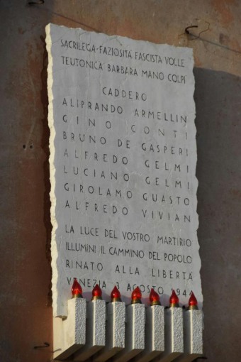 Alfredo Vivian, 36 ans, vénitien, ouvrier à Breda, commandant de l’armée partisane dans la région de Piave, le seul des sept déjà condamné à mort pour le meurtre d’un marin allemand sur la Piazzale Roma le 13 Décembre 1943, et le seul à être proposé par le commandement allemand, tandis que les six autres ont été signalés par la Questura et par le Comando della Guardia nazionale repubblicana. Alfredo Vivian fut délégué à la jeunesse communiste à Breda et à Marghera entre 1930 et 1932. En 1936, il a émigré en France. Entre 1937 et 1939, il a été bénévole pendant la guerre civile espagnole, où il fut blessé. Avec la défaite de la République Espagnole a été arrêté et emmené dans un camp de concentration en France, où il est resté pendant 2 ans et demi. En 1941 a été rendu par les fascistes français et a été condamné à cinq ans de réclusion à Ventotene. Il a été libéré le 25 Juillet 1943. Il a organisé un GAP surnommé "Venezia", opérant dans la ville lagunaire et dans la province, notamment à San Dona di Piave. Arrêté grâce à un piège tendu par les fascistes, avec la complicité de trois jeunes femmes, il a été horriblement torturé à plusieurs reprises, mais il n’a jamais parlé.