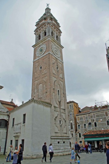 La plaque commémorative est apposée sur un petit bâtiment, à droite de l'église au pied du campanile de Santa Maria Formosa.