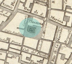 Santa Marina fut fondée comme église paroissiale en 1130 par la famille Balbi. L'église fut dédiée à Sainte Marine en 1231. Deux doges y furent enterrés : Michele Steno (1131-1413), 63 ème Doge (1400-1413) et Nicolo Marcello (1399-1474), 69 ème Doge (1473-1474) . Les deux tombeaux sont maintenant à San Zanipolo. L'église fut maintes fois restaurée avant d'être convertie en auberge en 1818. Elle fut finalement démolie en 1820. Le campanile fut détruit aussi à cette date.