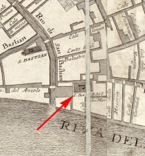 L'origine (entre 870 et 905) et le nom des fondateurs de cette église font l'objet de sources contradictoires. Ce qui est certain c'est que tous les visiteurs illustres qui arrivaient de la terre ferme étaient accueillis solennellement dans cette église paroissiale. On y trouvait l'autel des acquaioli (porteurs d'eau). L'église fut rénovée après un incendie en 1105 et reconstruite après un tremblement de terre en 1347. Elle béneficia d'une première campagne de restauration entre 1476 et 1514 et d'un autre en 1730 sous la direction d'Andrea Tirali. Déclassée en 1806, elle servit d'entrepôt à partir de 1810. Elle fut finalement démolie avec son campanile en 1824.