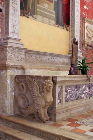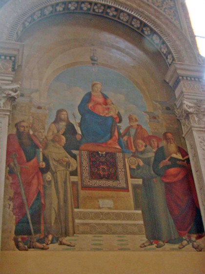 A droite : Saint Pierre, Saint Bernardin, Saint Bonaventure et Saint Jérome