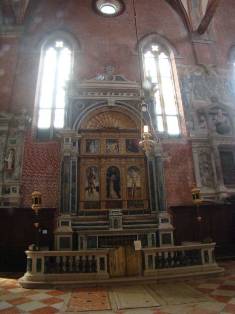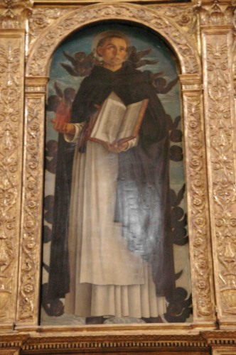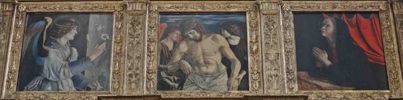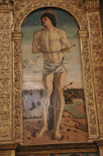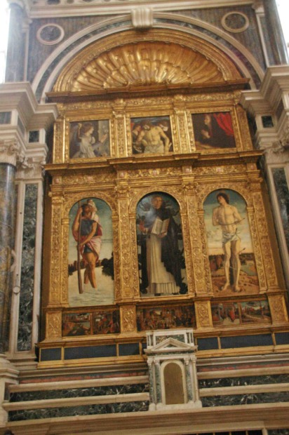 Polyptyque de Saint Vincent Ferrier, dominicain espagnol mort en 1419 et canonisé en 1455. L'attribution de l'oeuvre a longtemps été contreversée avant qu'elle ne soit définitivement attribuée à Giovanni Bellini en 1914.