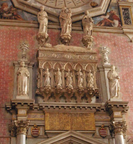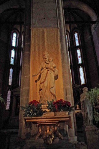 En haut, La Vierge entre Saint Pierre et Saint Paul.