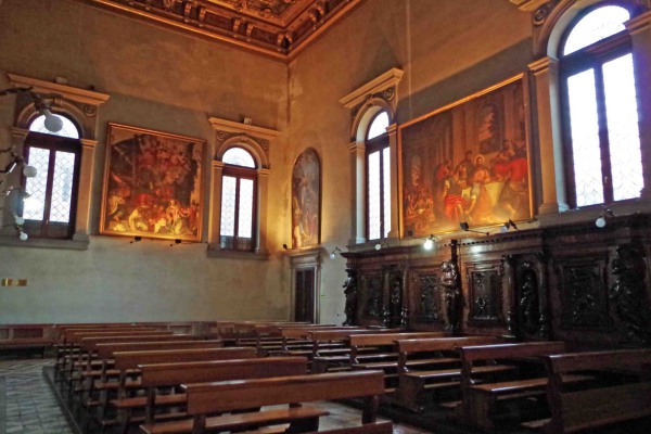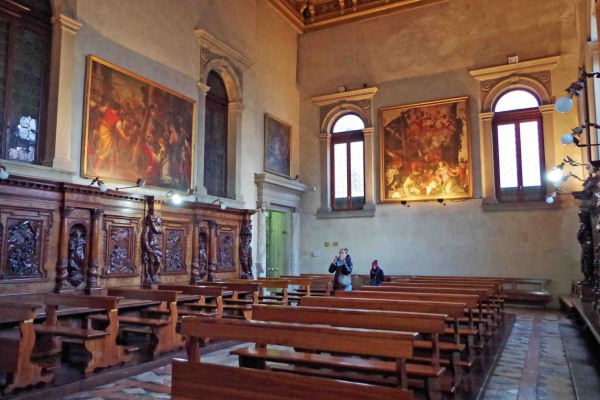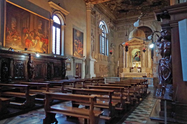 Dans nuit du 15 au 16 août 1867, un incendie a détruit la chapelle, incendiant le plafond en bois doré qui était orné d’oeuvres de Jacopo Tintoretto (Notre-Dame du Rosaire), Palma il Giovane, de Leonardo Corona, Francesco Bassano, Domenico Tintoretto, Giovanni Soens et autres. On y avait déposé temporairement, pour les restaurer, le Martyre de Saint Pierre du Titien, et la Vierge avec des Saints de Giovanni Bellini, qui furent, eux aussi, détruits. Après de très long travaux la chapelle fut solennellement réouverte le 4 octobre 1959. Elle a été ornée d'oeuvres provenant d'autres lieux.