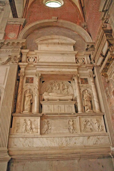 Son tombeau en marbre de Carrare réalisé par le sculpteur vénitien Tullio Lombardo se trouve dans la basilique de San Zanipolo. La construction de ce monument débute en 1500 et s'achève avant 1522.
