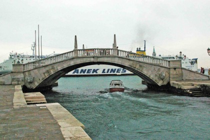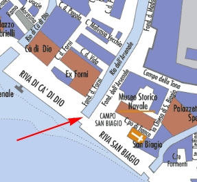 Sur le Rio de l'Arsenal, relie la riva de la Ca' di Dio à l'Ouest à la Riva San Biagio à l'Est.