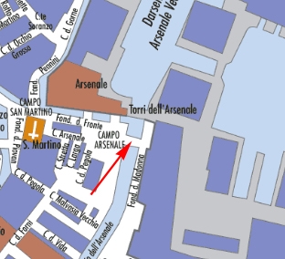 Sur le Rio de l'Arsenal, relie le Campo de l'Arsenal à l'Ouest au Fondamenta de l'Arsenal l'Est.