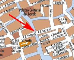 Sur le Rio dei Barcaroli, relie la Calle del Frutariol à l'Ouest à la Frezzeria à l'Est