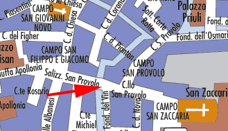 Sur le Rio del Vin, relie la Salizada San Provolo à l'Ouest au Campo San Provolo à l'Est.
