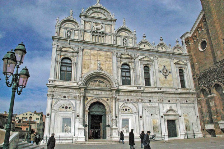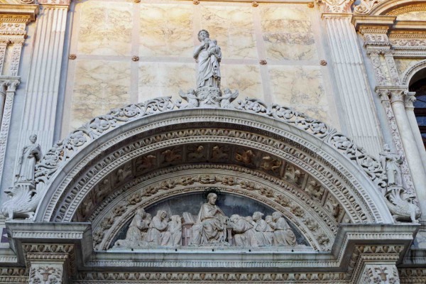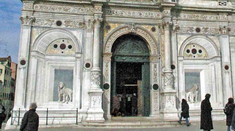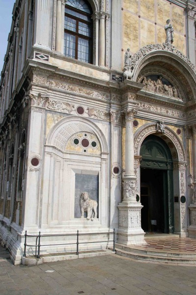 La façade, oeuvre originale de Pietro Lombardo, a été complétée par la suite par Mauro Codussi(~1440-1504)