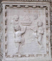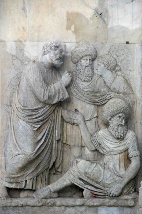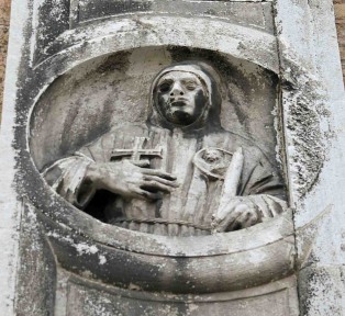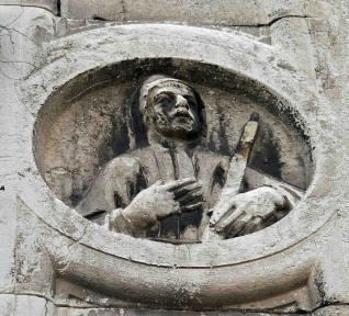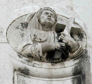 Sur chaque pilier rythmant la façade, sont sculptés dans des médaillons les bustes de membres de la Scuola avec une croix ou un cierge allumé. Ils portent l'emblème du lion en majesté cousu sur leur habit.