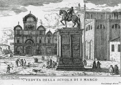 La Confraternité Saint-Marc fut fondée en 1260 dans l'église Santa Croce. Elle transféra son siège en 1438 à San Zanipolo. Son premier bâtiment fut détruit par un grand incendie en 1485. Il fut reconstruit pendant les années qui suivirent sur des plans de Pietro Lombardo (1435-1515), le chantier étant financé par un fonds mis en place par les membres.
