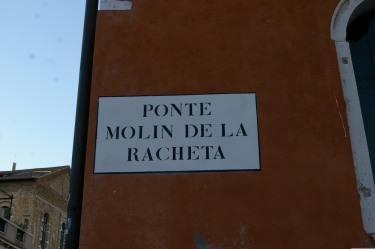 Ce pont à double nom comme beaucoup à Venise tire son nom d'une part de la famille Molin qui donna un doge à Venise et de Racheta, raquette ou lacchetta, un outil avec lequel on lançait les balles en l'air. Pont en pierre et rambardes brique.