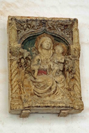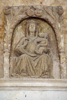 Le tympan conserve encore des traces de la polychromie d'origine.