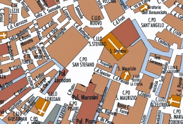 Les cloîtres de San Stefano sont accessibles par le Pont dei Frati reliant le Campo San Anzolo à la Calle dei Frati. Occupé maintenant par des bureaux de l'administration fiscale, l'accès est possible aux heures d'ouverture des bureaux. Un minimum de discrétion, un grand sourire et un bonjour aux personnes rencontrées et tout se passera bien!