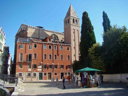 Au fond l'église éponyme, à gauche le Palazzo Loredan