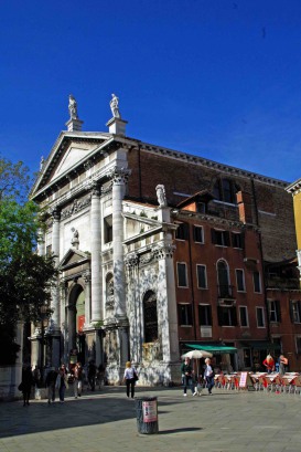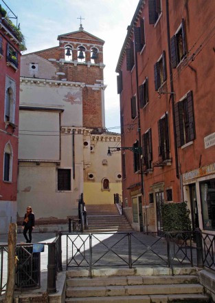 Arrivés sur le Campo San Stefano (qui mérite une visite complète), nous nous retournons pour observer la façade de San Vidal ce que nous n'avons pu faire correctement du campiello vu son étroitesse.