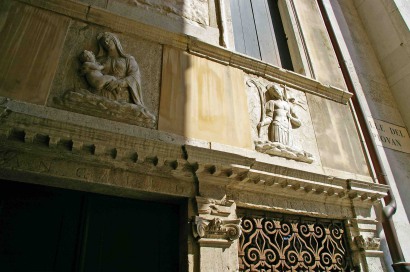 Juste avant d'arriver sur le Campo San Maurizio, à l'extrémité de la Calle del Piovan les murs de la Scuola degli Albanesi sont ornés de bas-reliefs de style lombard représentant une vierge à l'enfant, San Gallo, San Maurizio et le Sultan Mehmet II observant la citadelle de Scutari (Shkodër - Shkodra - en italien Scutari est une ville du nord-ouest de l'Albanie).