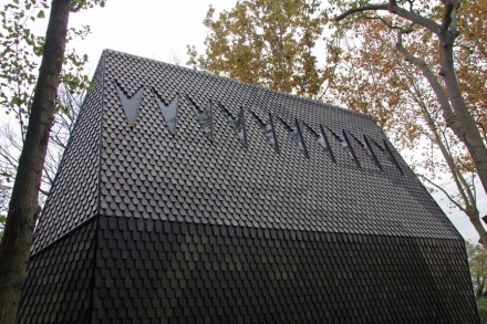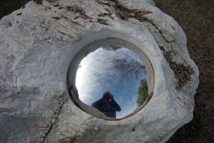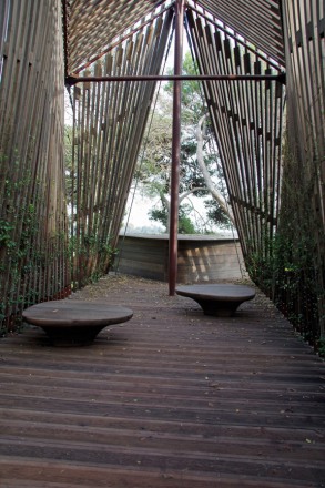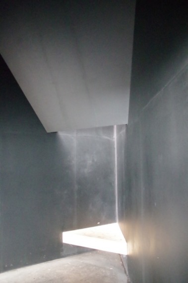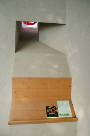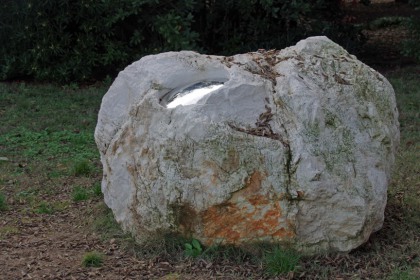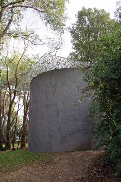 Derrière la chapelle de Norman Foster, ce drôle de miroir inséré dans un rocher.