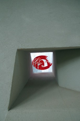 Entouré de blanc , le lieu d'exposition à l'est de l'île