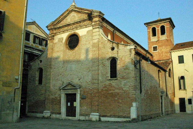 Une église a été construite sur ce site au XI ème siècle par la famille Venier en reconnaissance et célébration pour une victoire vénitienne, dans laquelle cette famille avait participé, sur les génois à Negroponte. En 1213, l'église fut restaurée par la famille Pesaro. Une reconstruction ultérieure s'est produite en 1713.