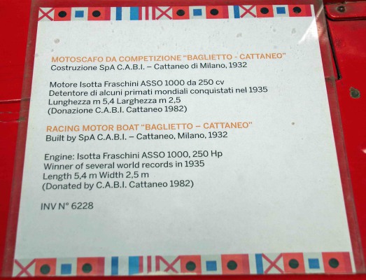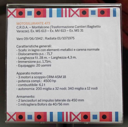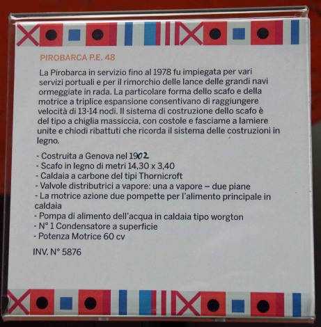 La machine à vapeur à triple expansion, la chaudière et la partie de la coque afférent ont été installées à Venise, dans le Padiglioni delle Navi.