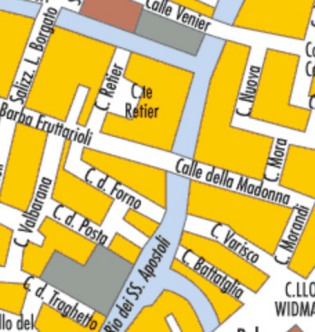 Sur le Rio Santi Apostoli, relie le Rio Terà Barba Frutariol à l'ouest, à la Calle de la Madona à l'Est