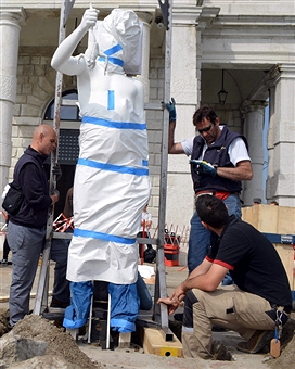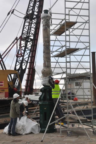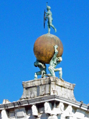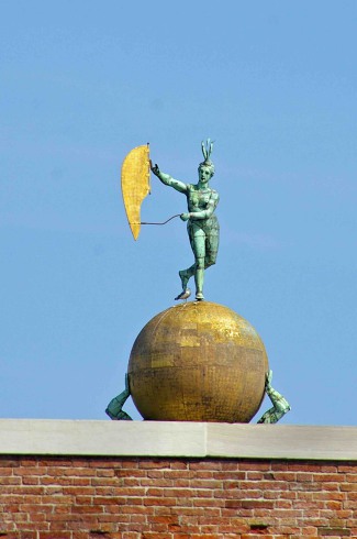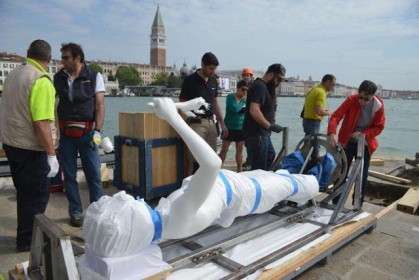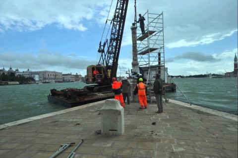 Selon les restaurateurs de la société Neri, la lanterne de Punta della Dogana qui vient d’être réinstallée est très probablement l’originale et non une reproduction.