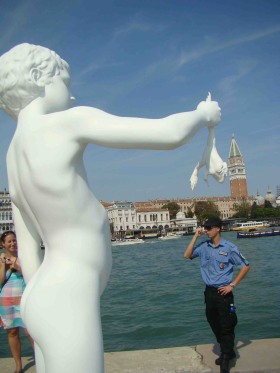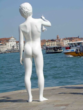 Depuis environ 1860, la Pointe de la Douane était ornée par un superbe lampadaire. Mais à l'occasion de l'accord passé entre la Mairie de Venise et la Fondation Pinault, les bâtiments de la Douane de Mer ont été réhabilités entièrement par la Fondation. L'ensemble restauré a été inauguré le 4 juin 2009. Dans le cadre de l'exposition “Mapping the Studio“ qui a ouvert le même jour, exit le lampadaire, remplacé par une statue de 2,4 m de Charles Ray né en 1953 à Chicago : “Boy with frog“. Au bout d'un moment les vénitiens se sont lassés et ont demandé le retour du lampadaire... Ce qui a été fait le 24 mai 2013... Tout est bien qui finit bien.