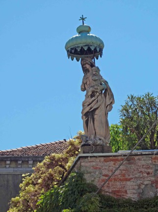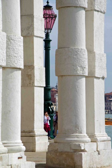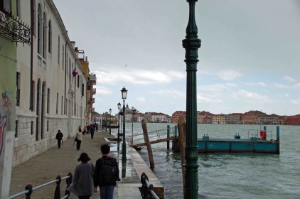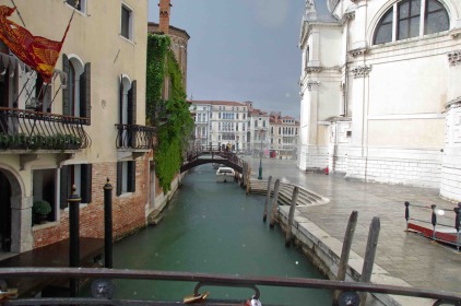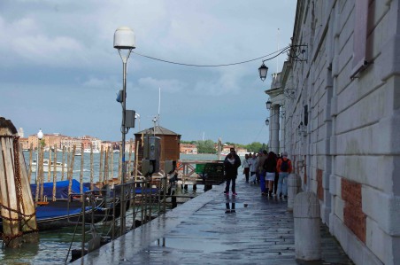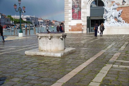 Çà sent la fin ! En route vers la Pointe de la Douane (Punta della Dogana). Nous vous proposons de nous suivre par le trajet suivant : Calle A. da Ponte, à gauche la Piscina Sant'Agnese, à droite la Calle de Mezo puis le Ponte de Mezo, à droite Fondamenta de Cà Brigadin jusqu'au Fondamente Zattere agli Incurabili puis le Pont éponyme, à gauche par le Campiello drio egli Incurabili, la Calle degli Incurabili, puis le Ramo degli Incurabili, à droite la Calle dei Navaro, le rio Terà San Vio, à droite la Calle del monastero, à gauche la Calle Santi et dans le prolongement le Pont du même nom, à gauche le Fondamenta de la Cà Bala jusqu'au Rio Terà dei Spezier, puis le Rio Terà dei Catecumeni. Encore un effort, nous passons le Ponte de la Salute, à gauche le Fondamenta de la Salute, et enfin à droite Le Campo de la Salute, le Fondamenta de la Dogana et enfin, enfin la Punta della Dogana, but de notre promenade de plusieurs kilomètres.