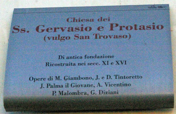 Une première église est attestée dés 1028. Elle fut détruite par un incendie en 1105. Reconstruite grâce aux dons des fidèles, elle fut dotée d'un narthex et d'une coupole. L'édifice s'écroula dans la nuit du 11 septembre 1583. L'église actuelle est érigée en 1584 sur un projet de Francesco Smeraldi, élève d'Andréa Palladio. Elle fut consacrée en 1657. Une des caractéristiques de ce bâtiment est sa double façade. Une façade sur les Campo San Trovaso et l'autre donnant sur le rio éponyme. Selon la tradition, la double entrée était nécessaire pour tenir à l'écart les factions rivales : les Castellani et des Nicolotti, quand ils venaient assister à la commémoration des saints, afin d'éviter le déclenchement des hostilités.