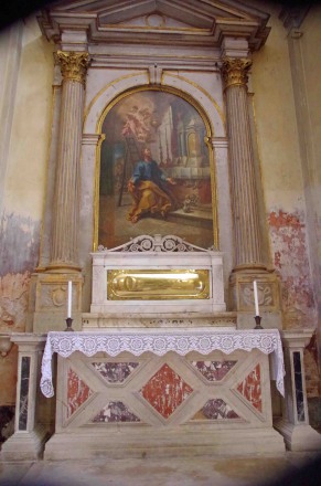 Saint Chrysogone est un martyr du IVe siècle qui figure au Canon de la messe. Ancien soldat de l'armée romaine et évêque d'Aquilée ( en Vénétie), il fut décapité et jeté à la mer sous Dioclétien.